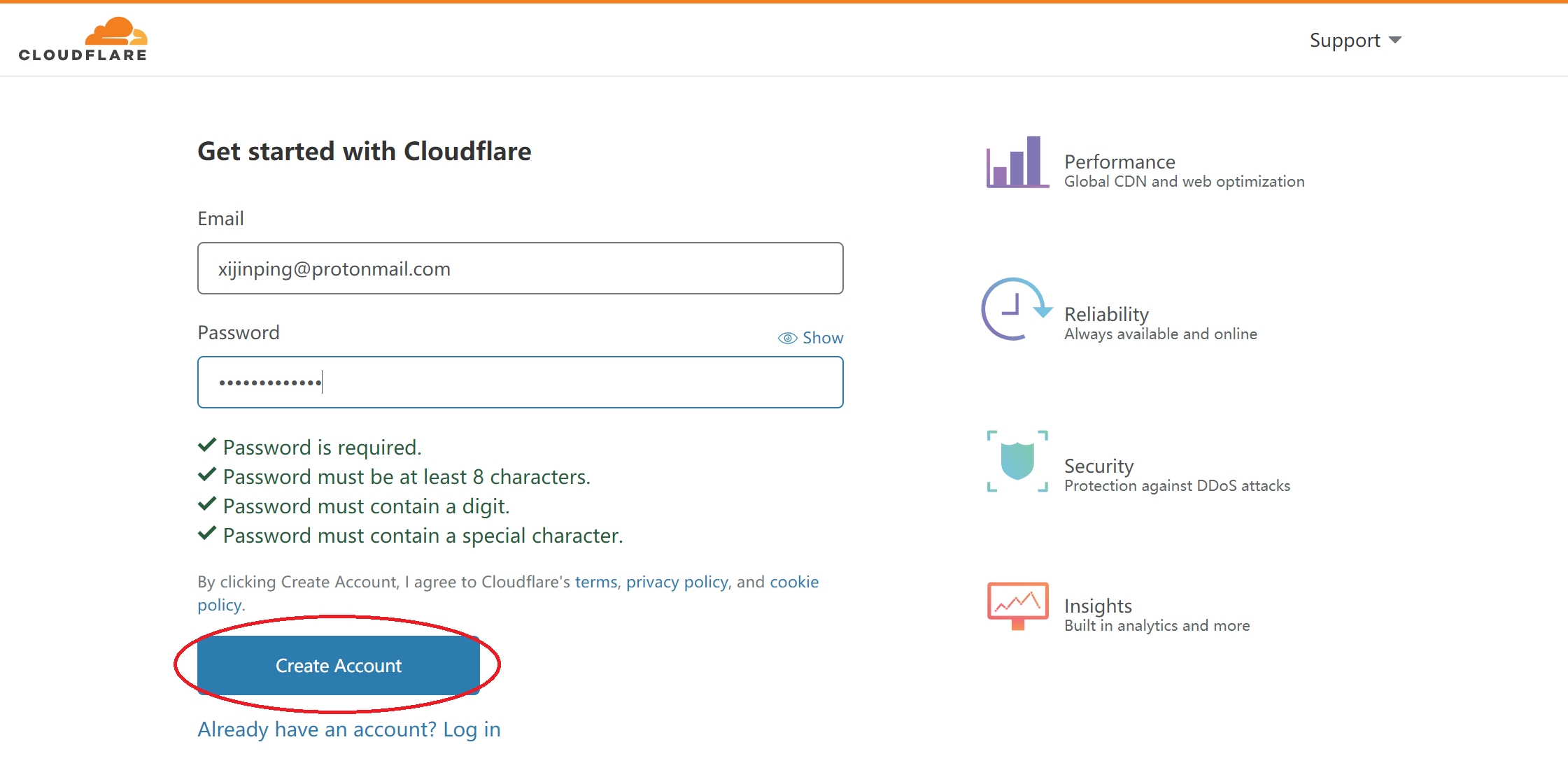 打开Cloudflare官网,用邮箱注册,如图。注册页面入口https://dash.cloudflare.com/sign-up