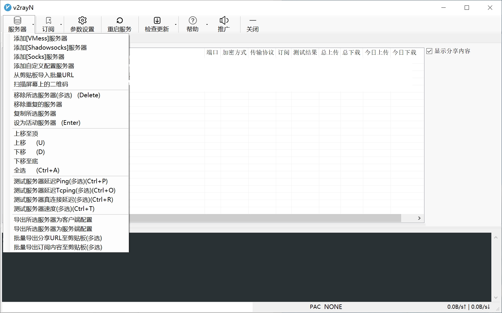 分享配置很简单,在Windows的V2RayN客户端里,点击服务器列表,勾选右边的“显示分享内容”,可以显示配置的二维码。安卓端选择“扫描二维码”导入配置即可。