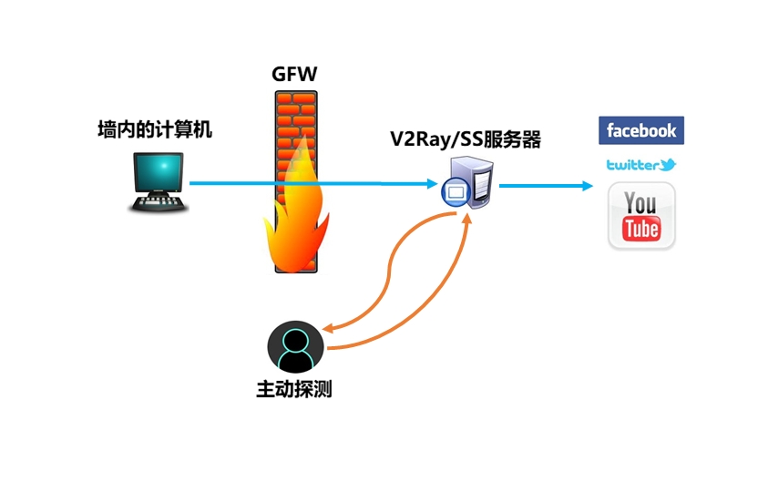 尽管流量没有任何明显的特征,但是如果墙主动访问代理服务器,会发现流量的目的地没有真正的网站,从而识破https流量的目的。使用https流量不做掩护,反而增大了IP被墙的概率。因此你需要在V2Ray服务外面加一层真网站做掩护。