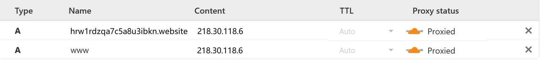 点击【DNS】按钮,进入Cloudflare的DNS管理页面,如下图: