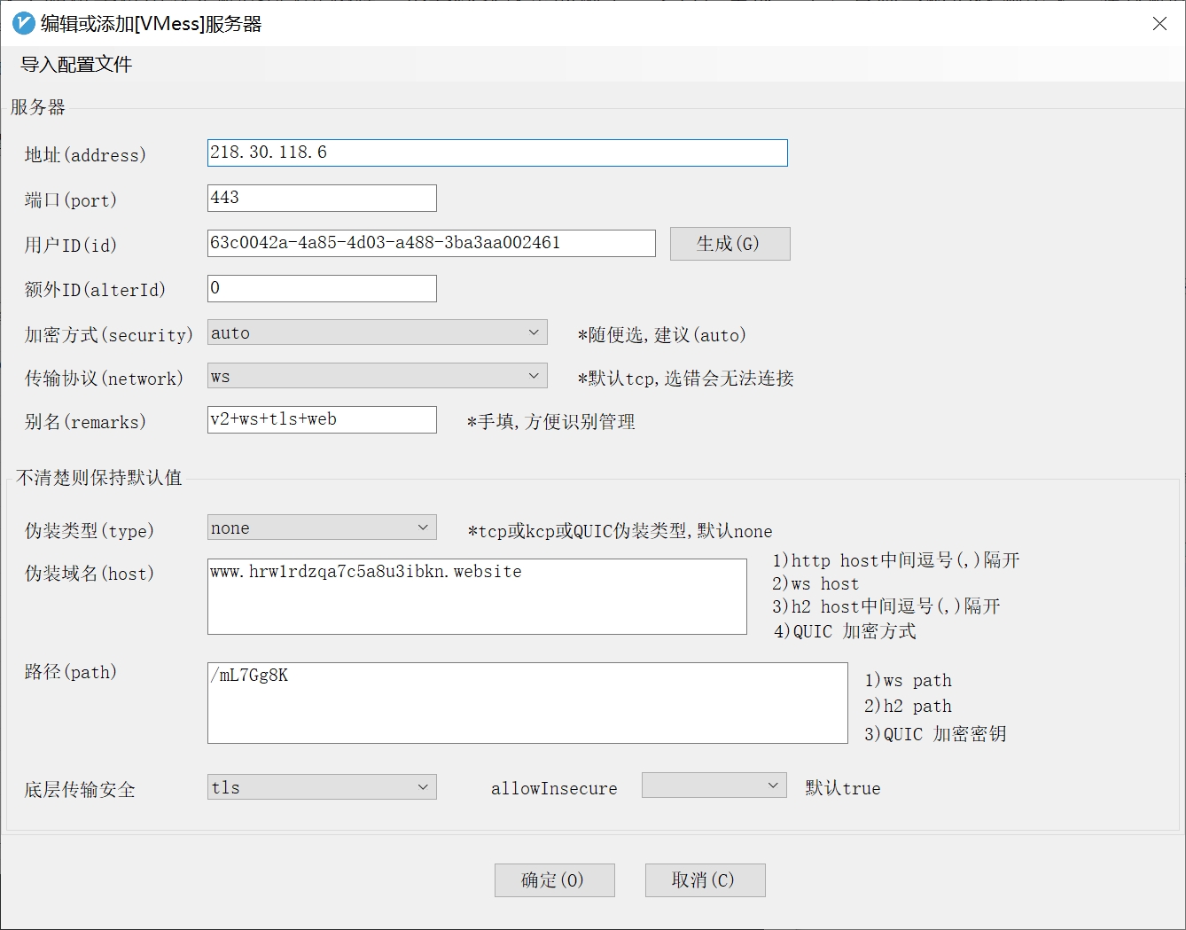 用户ID:就是2.1节中,V2Ray配置文件里的UUID,本文中是63c0042a-4a85-4d03-a488-3ba3aa002461